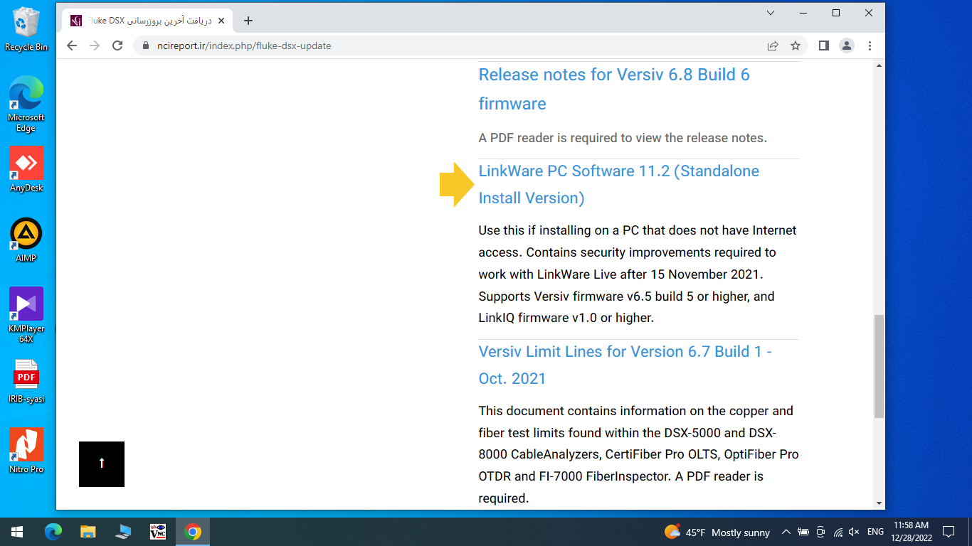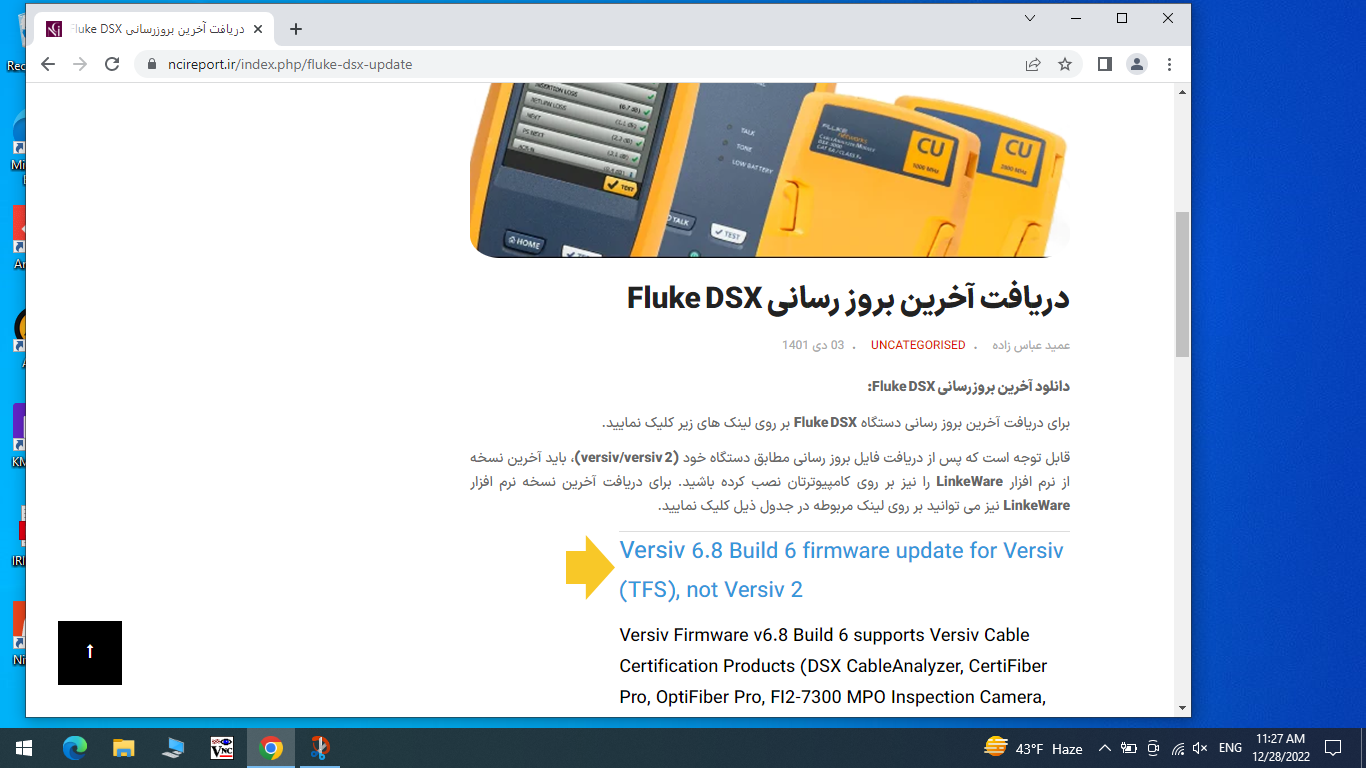پس از بروز کردن نرم افزار LinkWare نوبت به دریافت آپدیت فریم ورک دستگاه Fluke سری DSX می باشد.