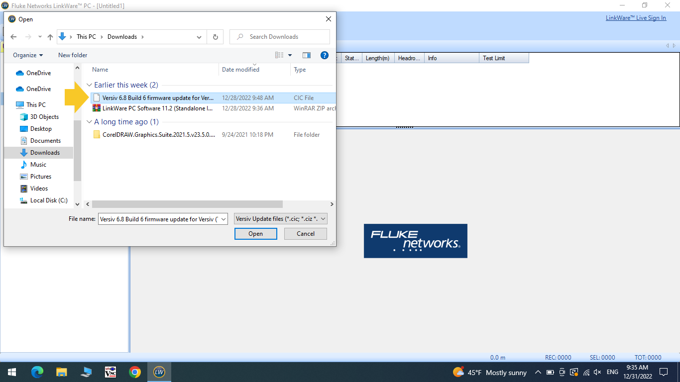 فایل آپدیت software مخصوص دستگاه فلوک سری DSX را که دانلود کرده اید انتخاب نمایید.