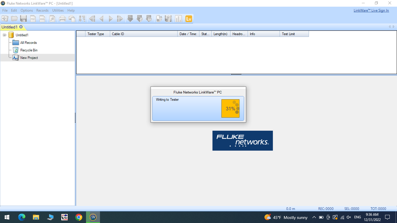 پس از انتخاب فایل آپدیت software مورد نظر، پنجره ی زیر در نرم افزار LinkWare باز می شود و این موضوع بدین معناست که دستگاه فلوک در حال بروز رسانی می باشد.