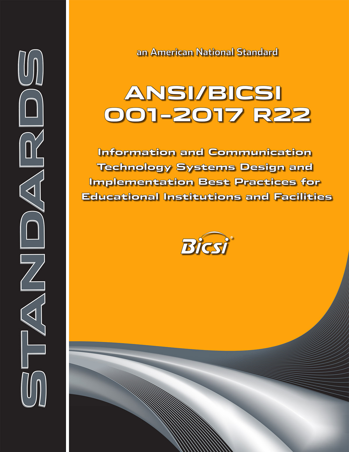 استاندارد ANSI/BICSI-001 2017 R22 برای شبکه ی ارتباطی فضاهای آموزشی امروزی و مدرن نوشته شده است و با در نظر گرفتن معماری و جمع آوری اطلاعات مورد نیاز، طراحی زیرساخت ICT را در فرآیند توسعه ساختمان گنجانده است.